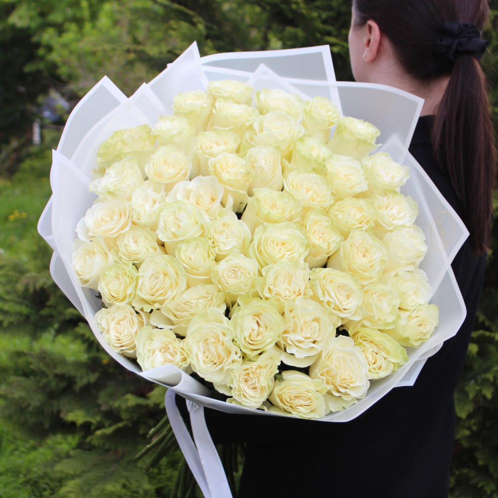 Букет из 51 белой розы Мондиаль 70 см