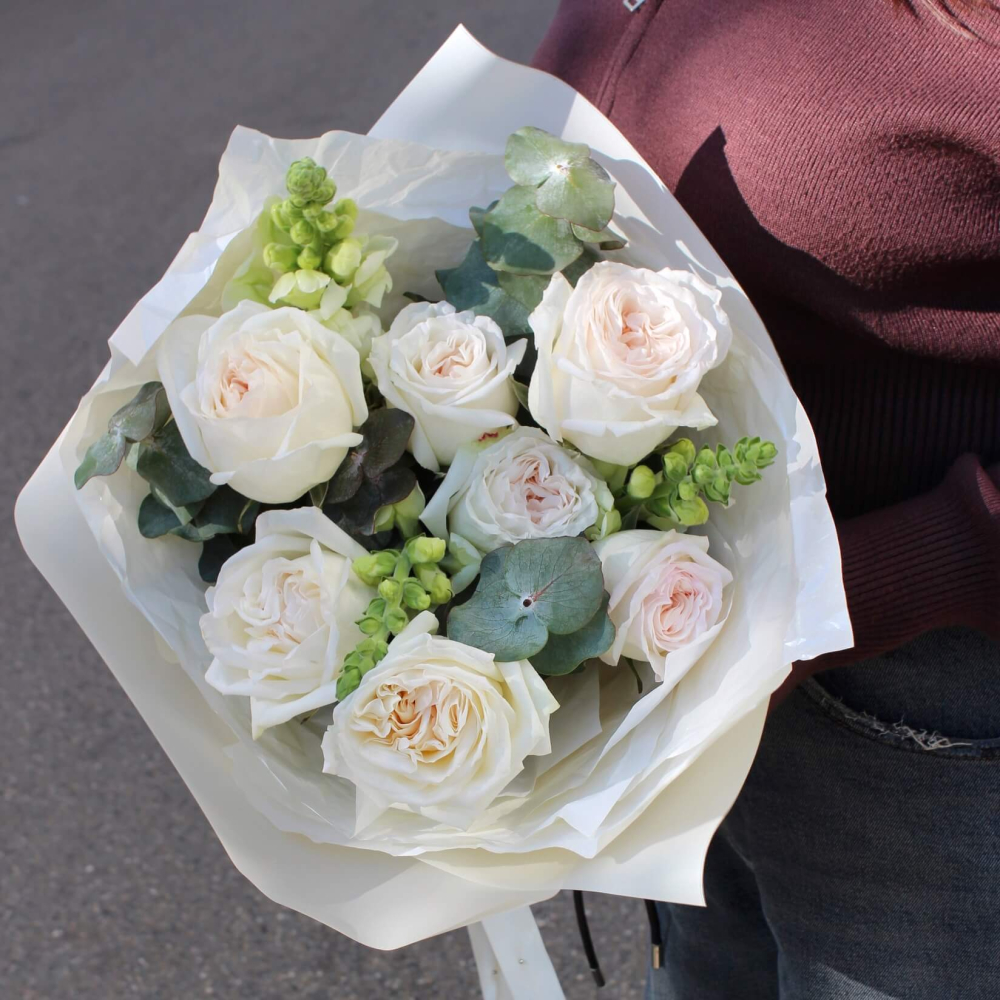 Букет из 7 ароматных роз с эвкалиптом