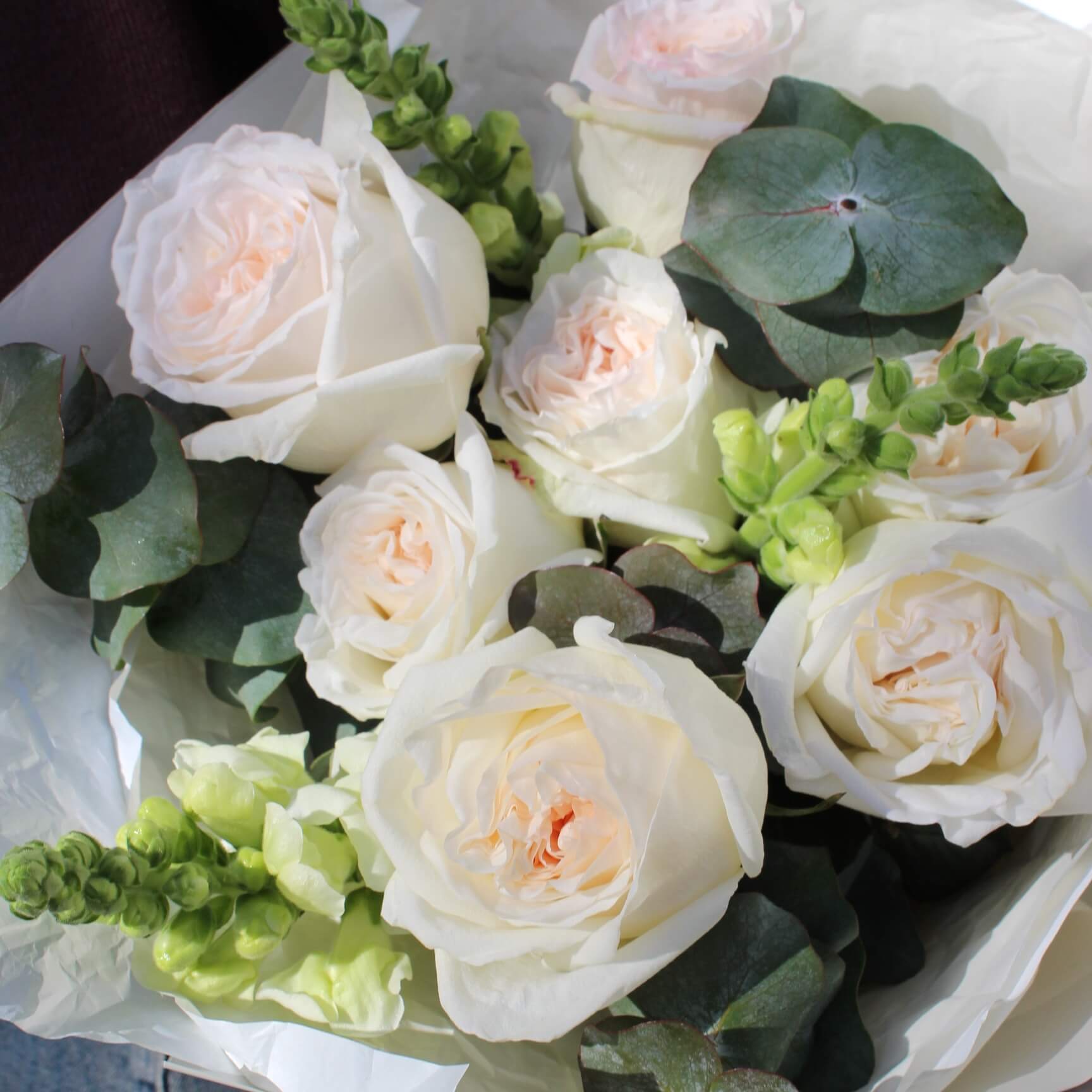 - роза пионовидная Охара - 7 шт, эвкалипт - 1 пучок