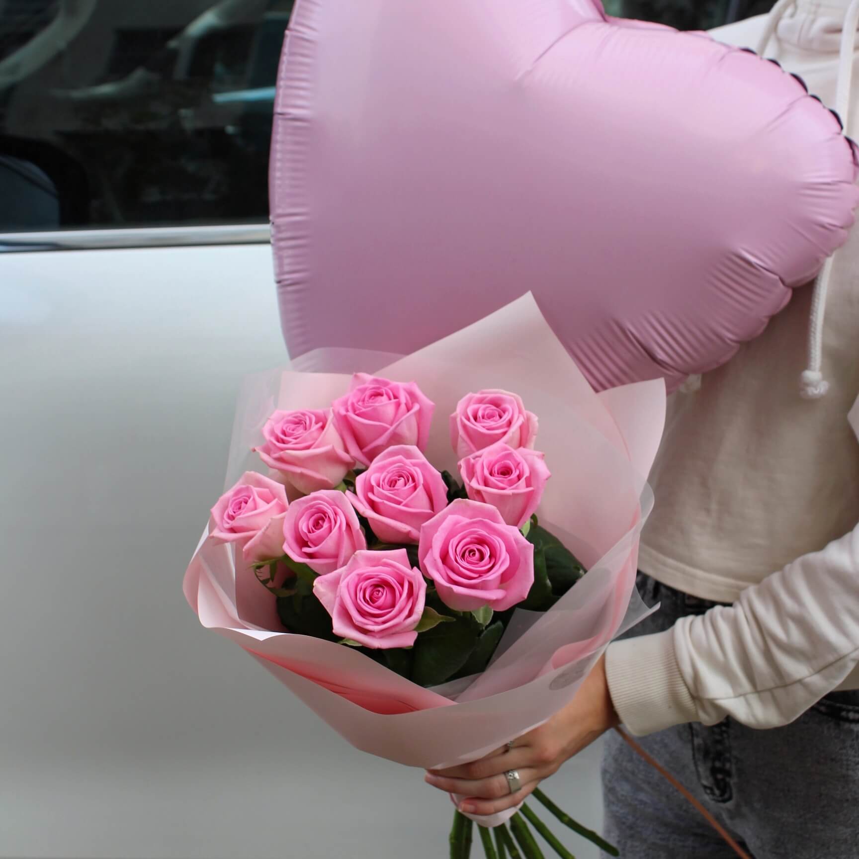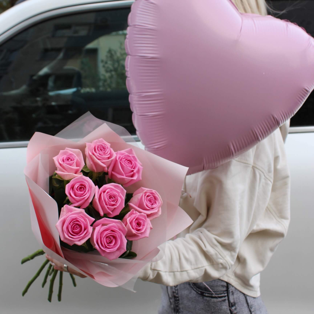 Букет из розовых роз сорта "Аква"