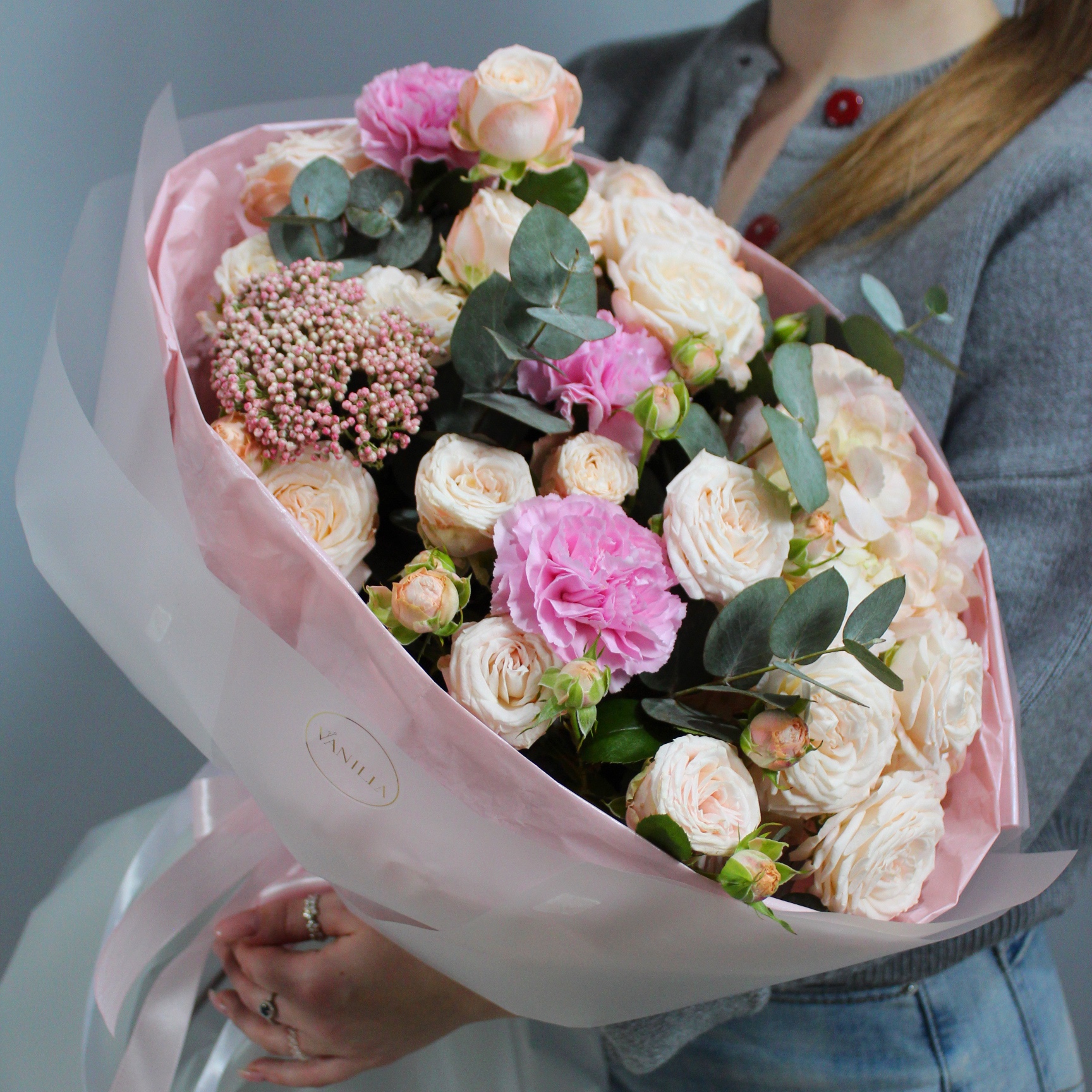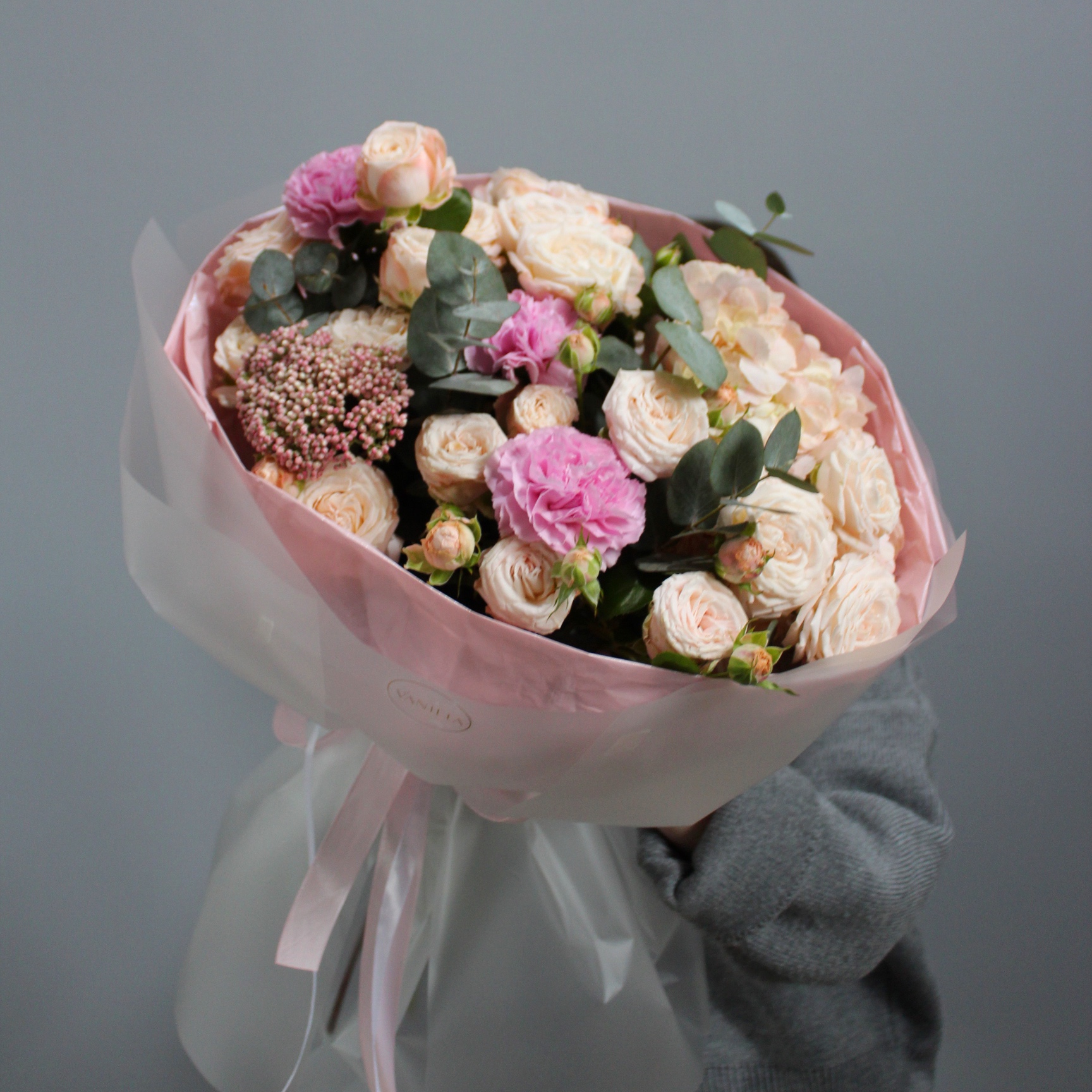 - эвкалипт, кустовая роза Бомбастик - 5 шт