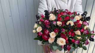 - кустовые розы (3х сортов) - 30 шт, ягоды черные - 5 веток