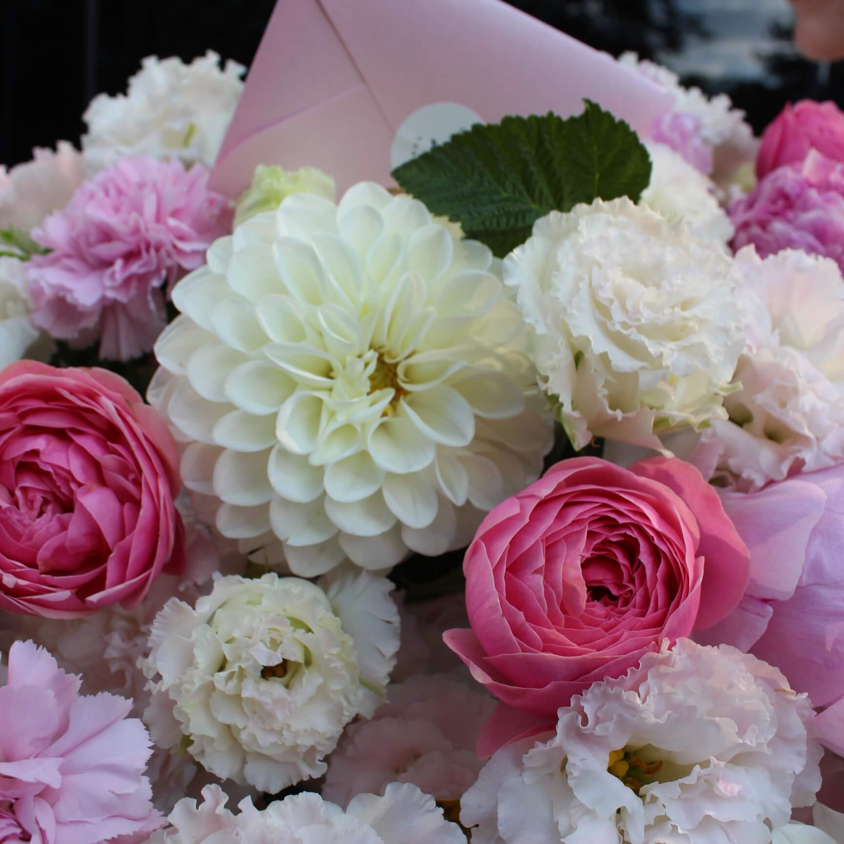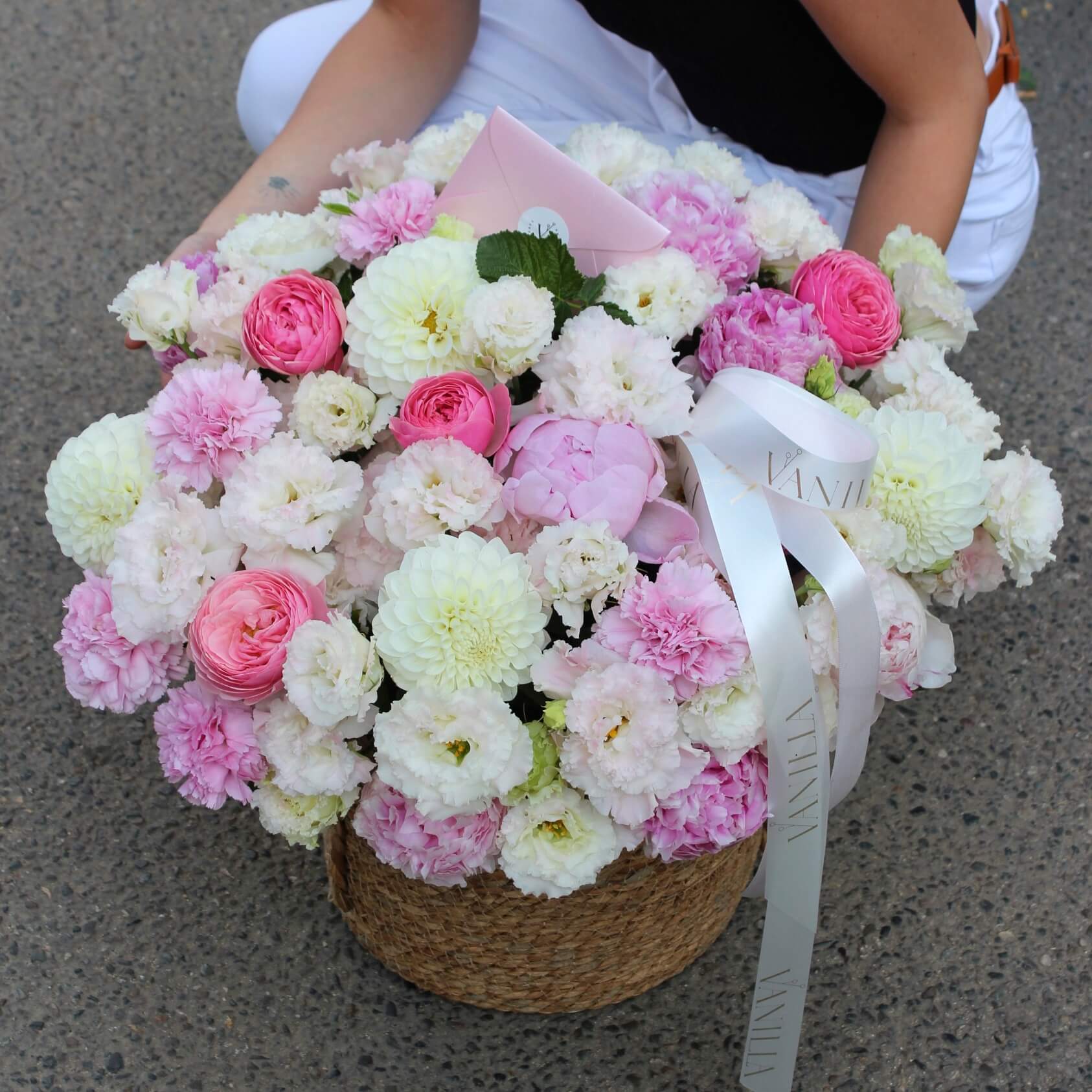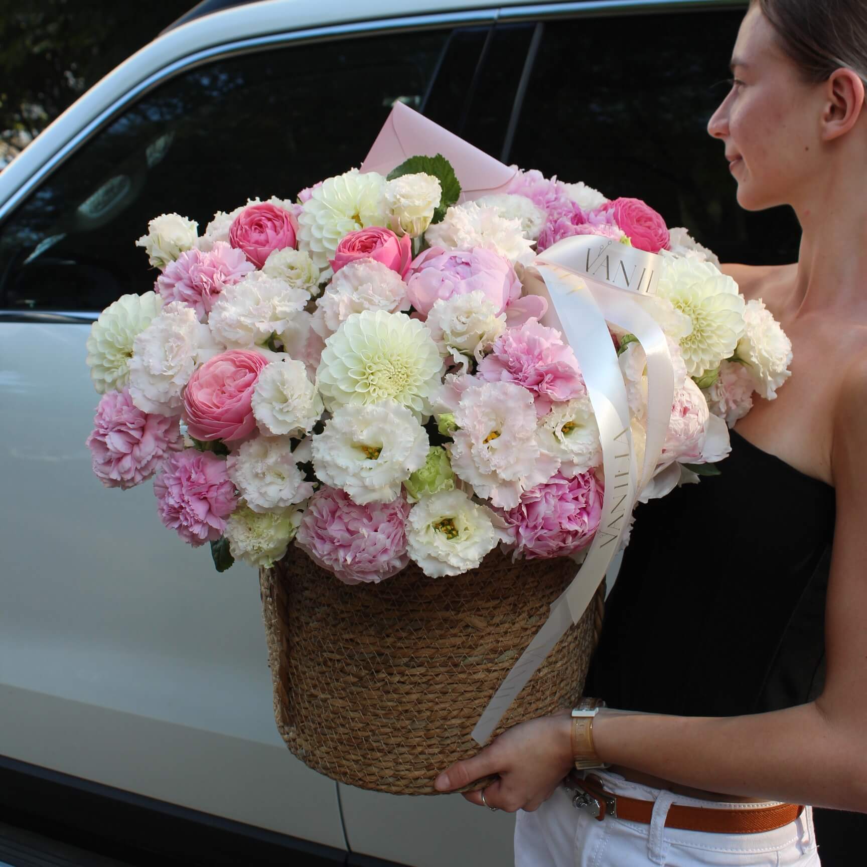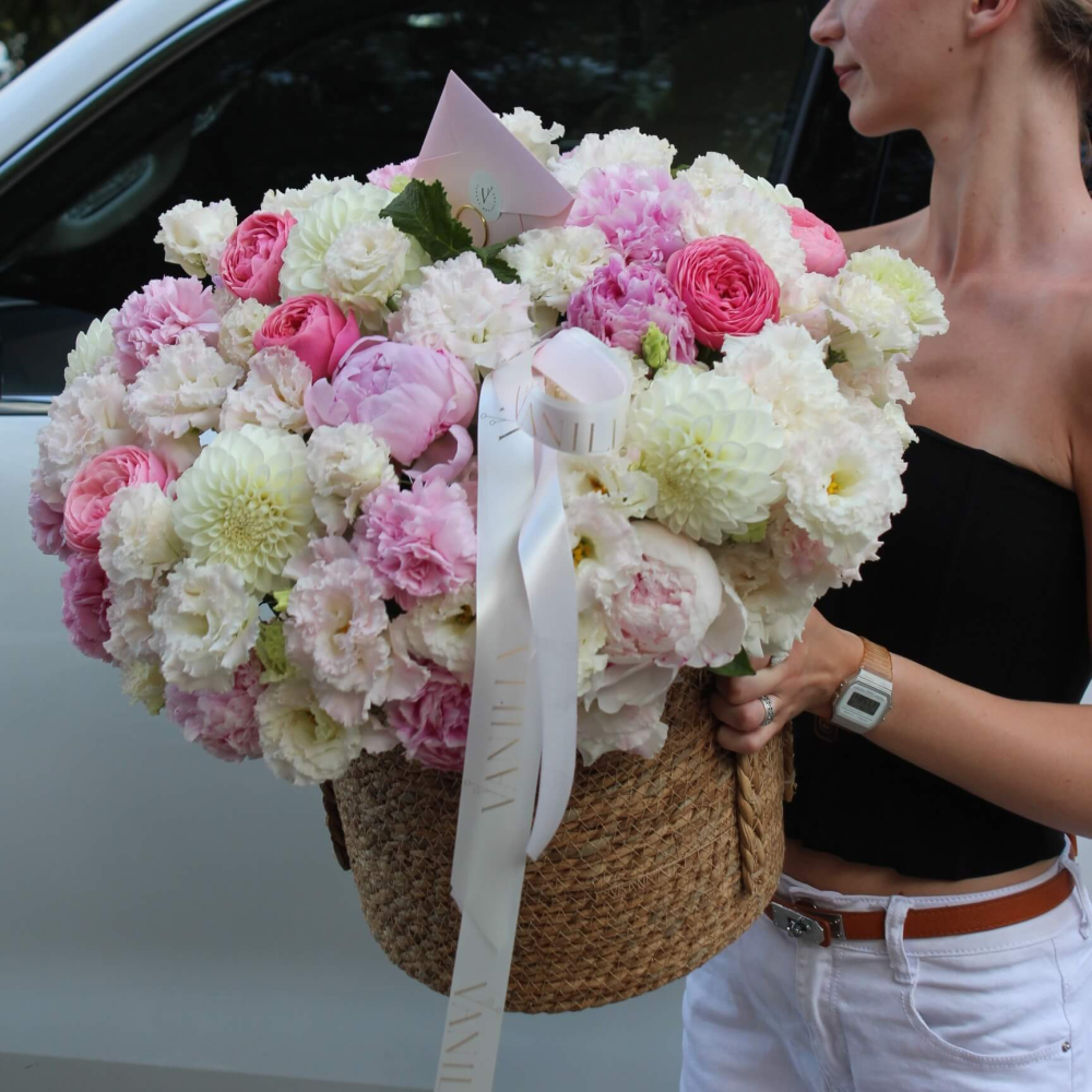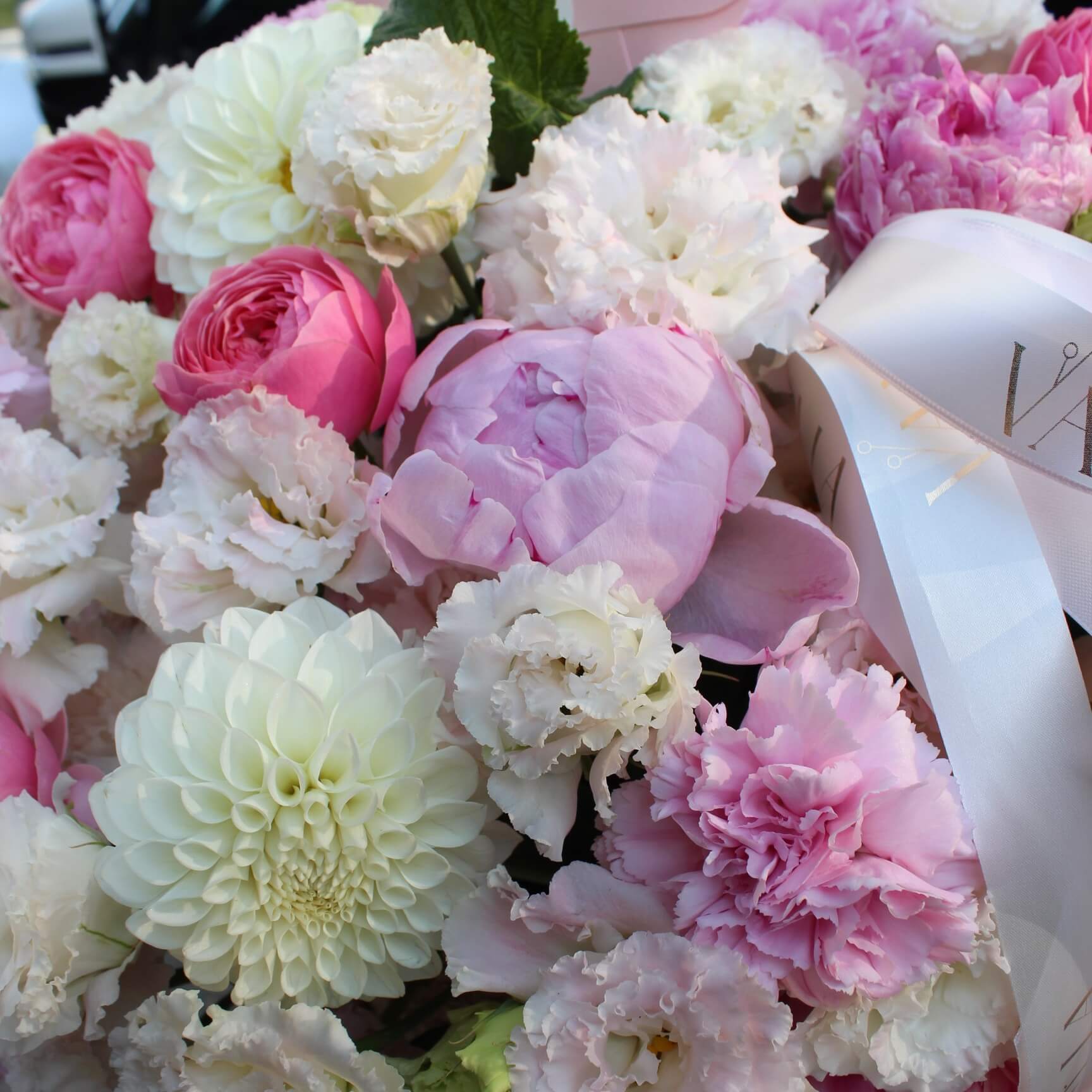 - пион (вне сезона заменяется) - 7 шт, эустома - 30 веток