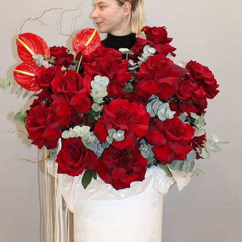 У нас работают опытные флористы. Если вы не выбрали вариант из предложенных композиций по фото, они подскажут вам, какие цветы можно взять для букета и составят его по вашему заказу.
