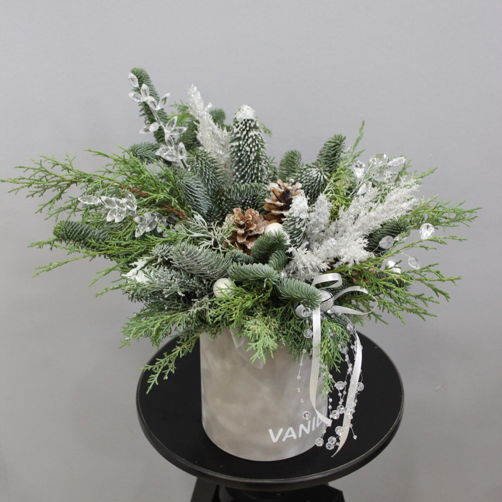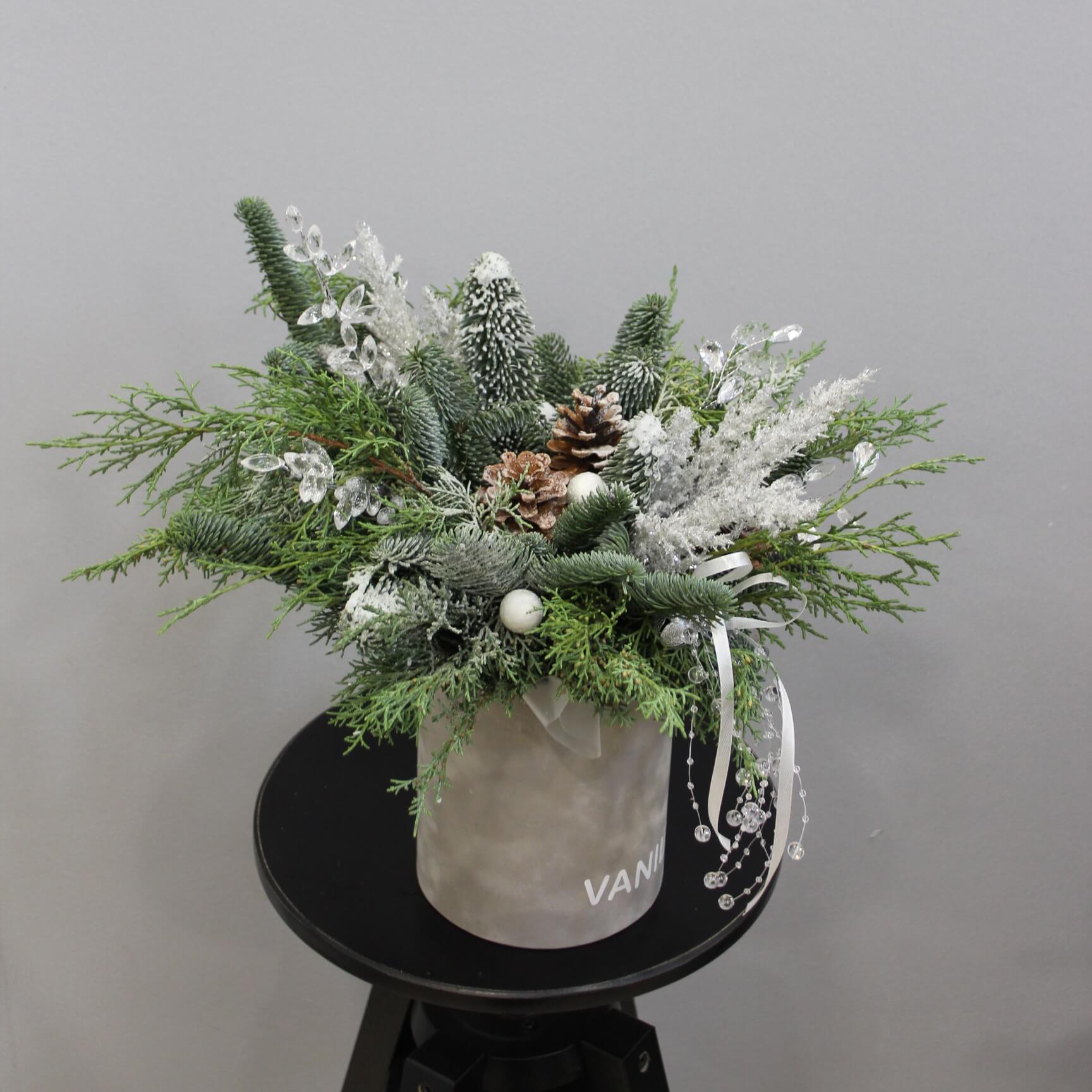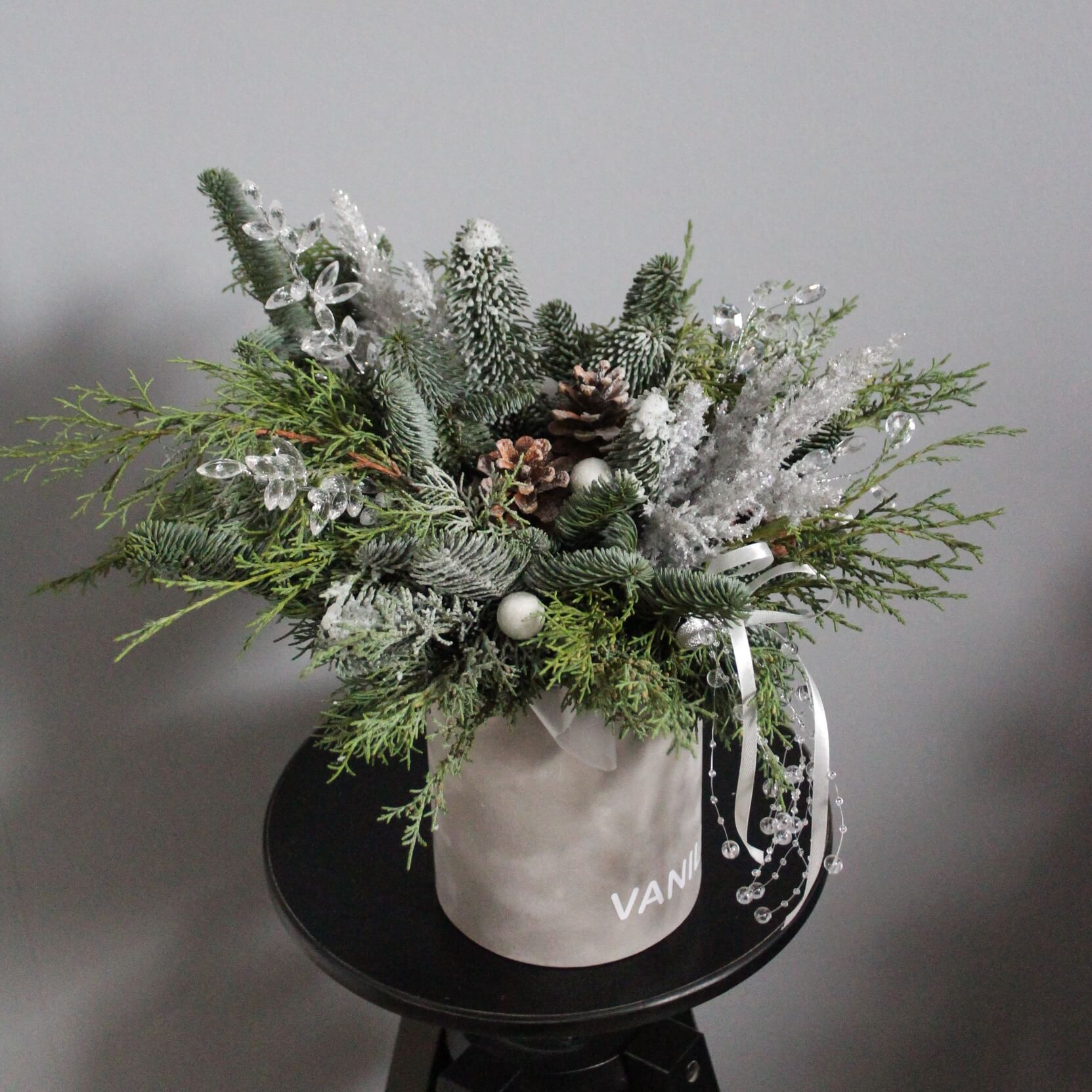 - бархатная шляпная коробка - 1 шт, губка 0,5 шт, пленка подложка, нобилис (пихта)