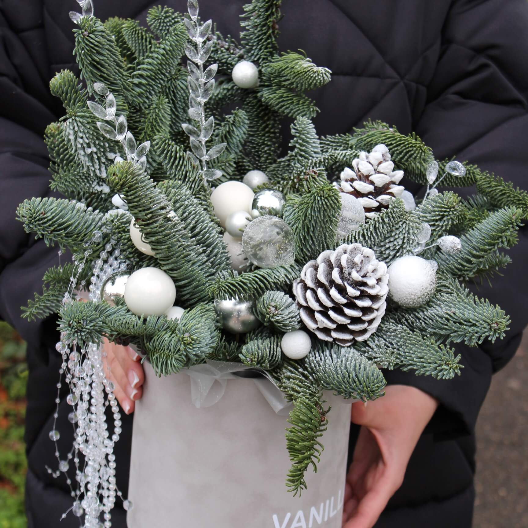 Декоративное кашпо с натуральным нобилисом и декоративными элементами.