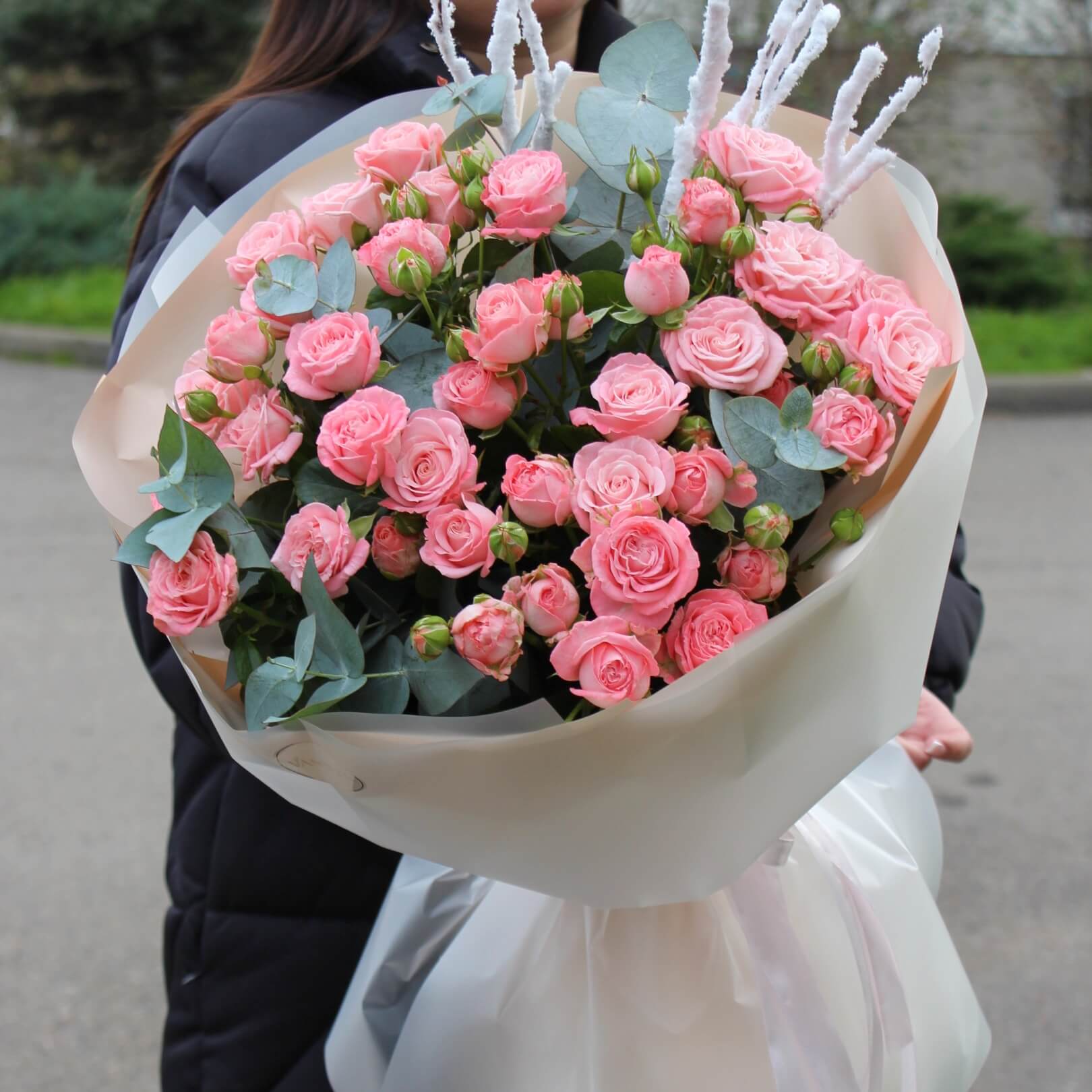Зимний букет со снежными веточками