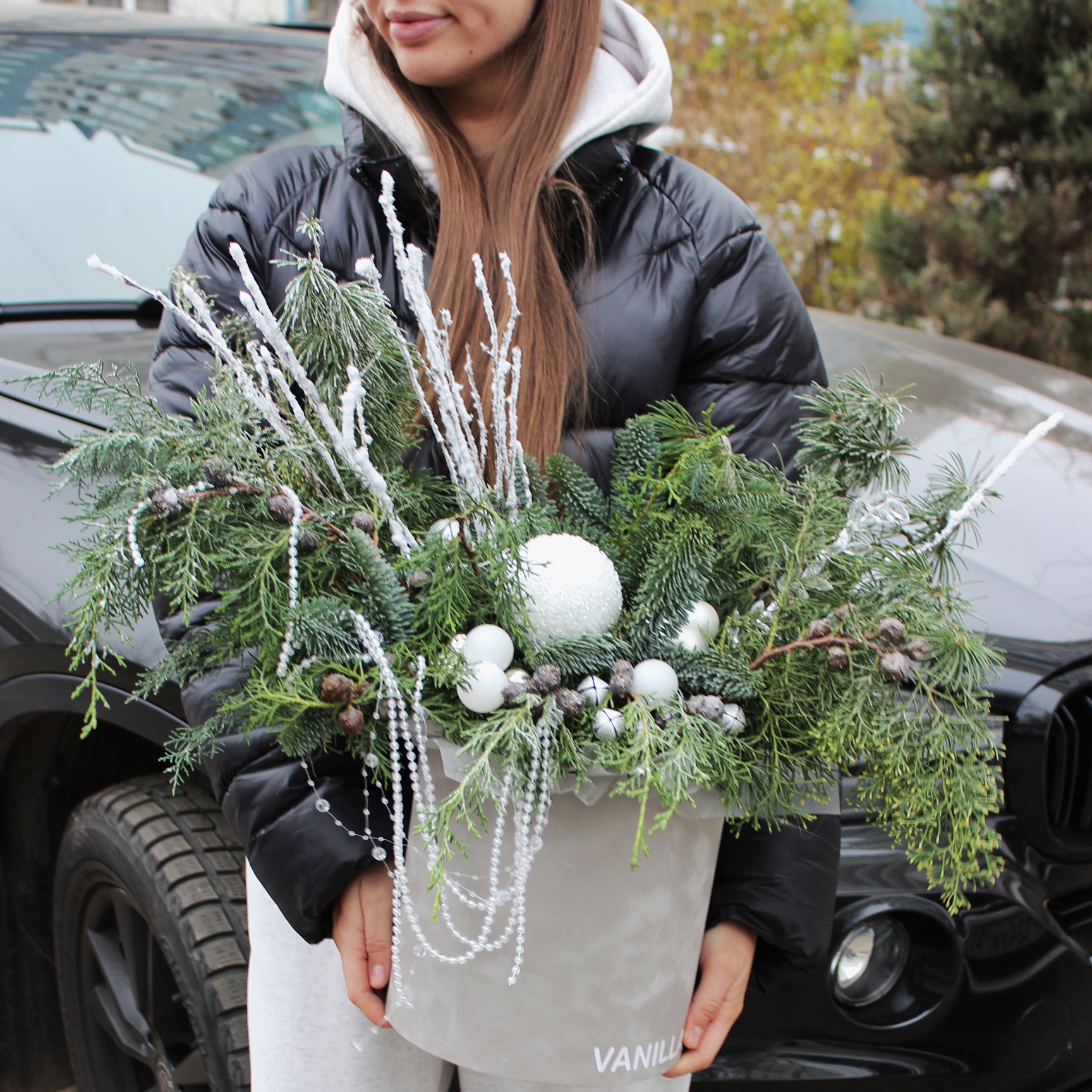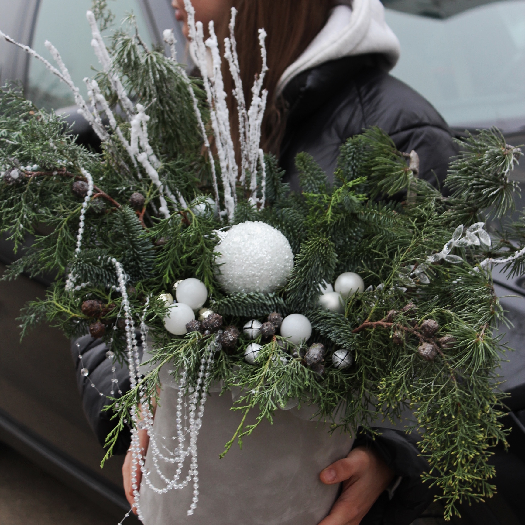- снежные ветки - 2 шт ,шишки натуральные 2 шт