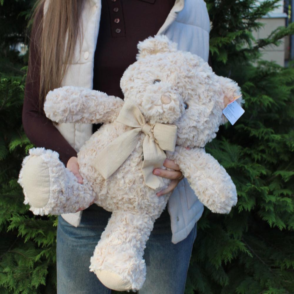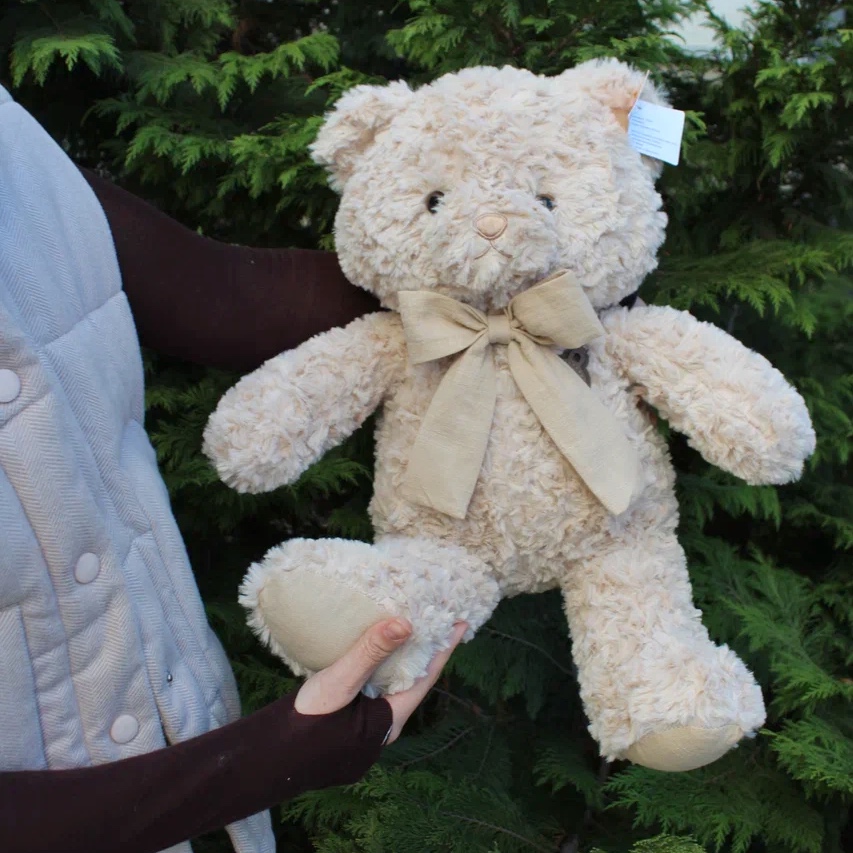 За ворсом средней высоты легко ухаживать : мишку можно стирать, как вручную, так и машинке на щадящем режиме до 40 градусов.