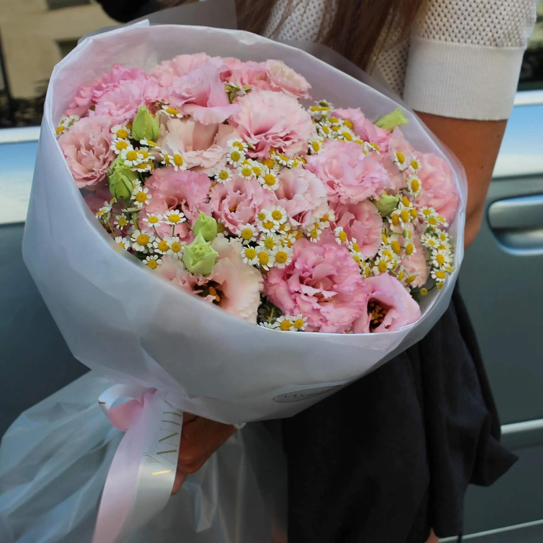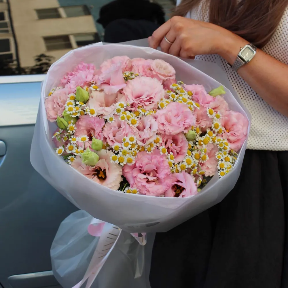 Букет микс из эустомы и ромашек