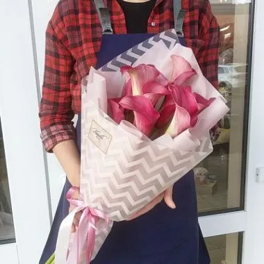 - каллы - 9 шт, упаковка дизайнерская - M, лента атласная - 2 шт