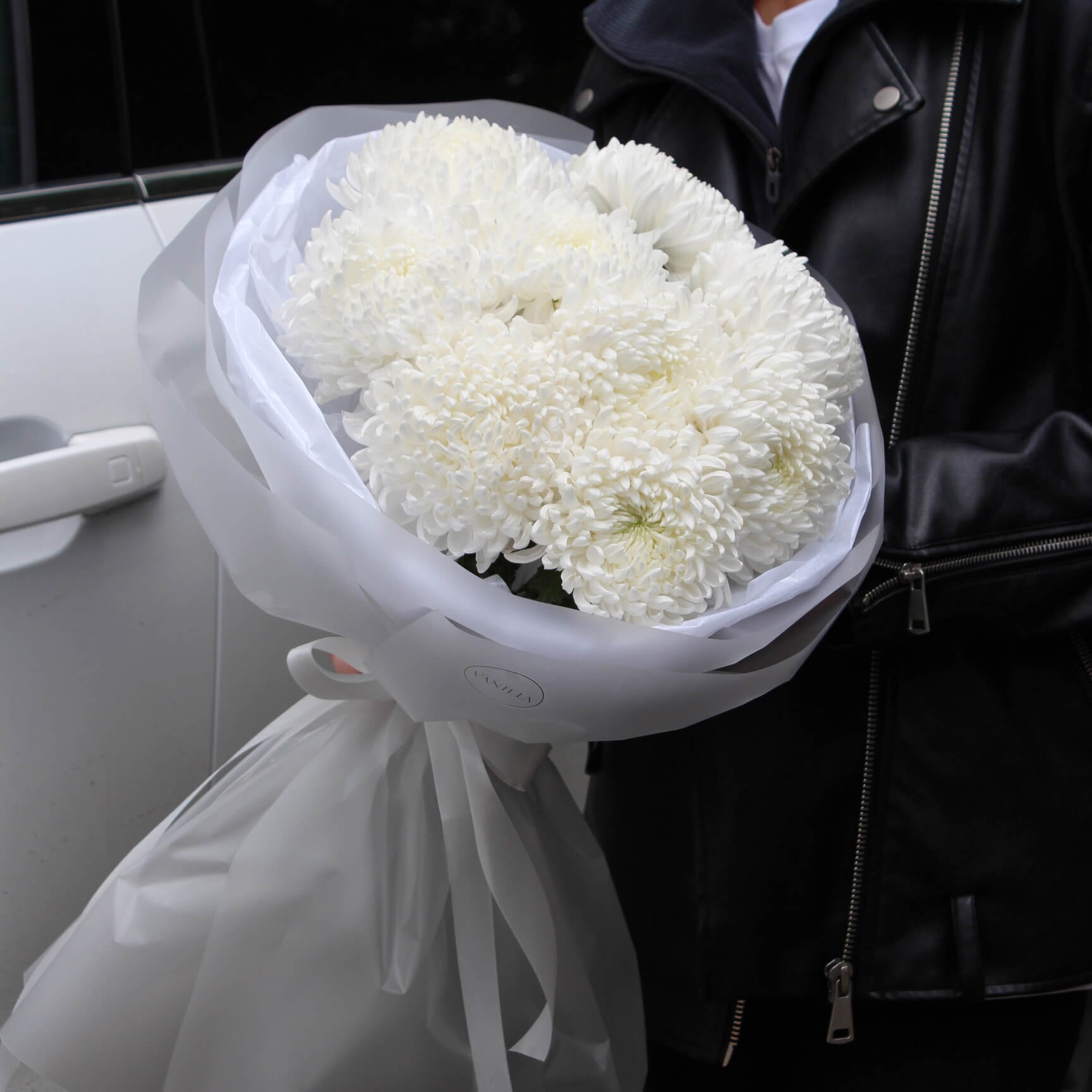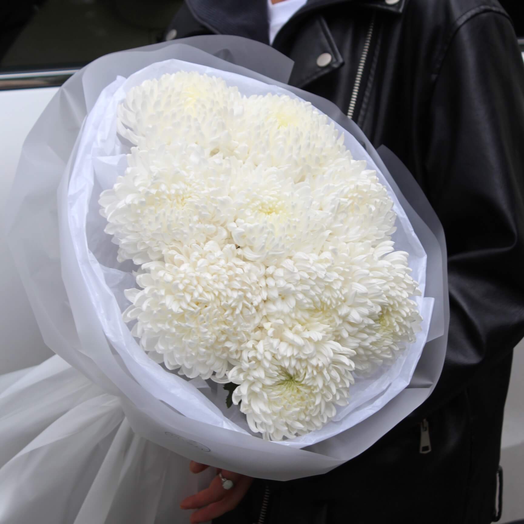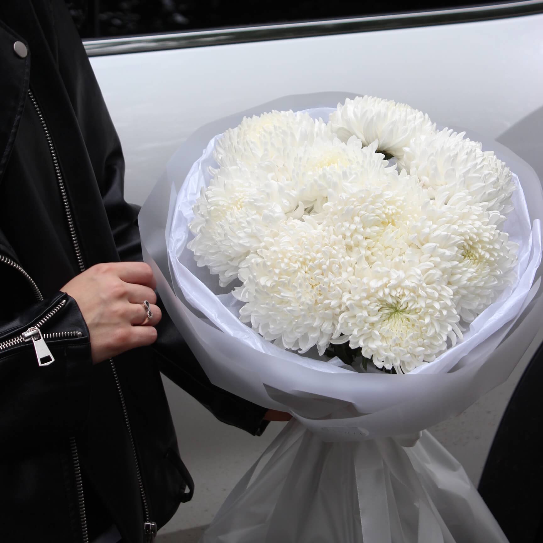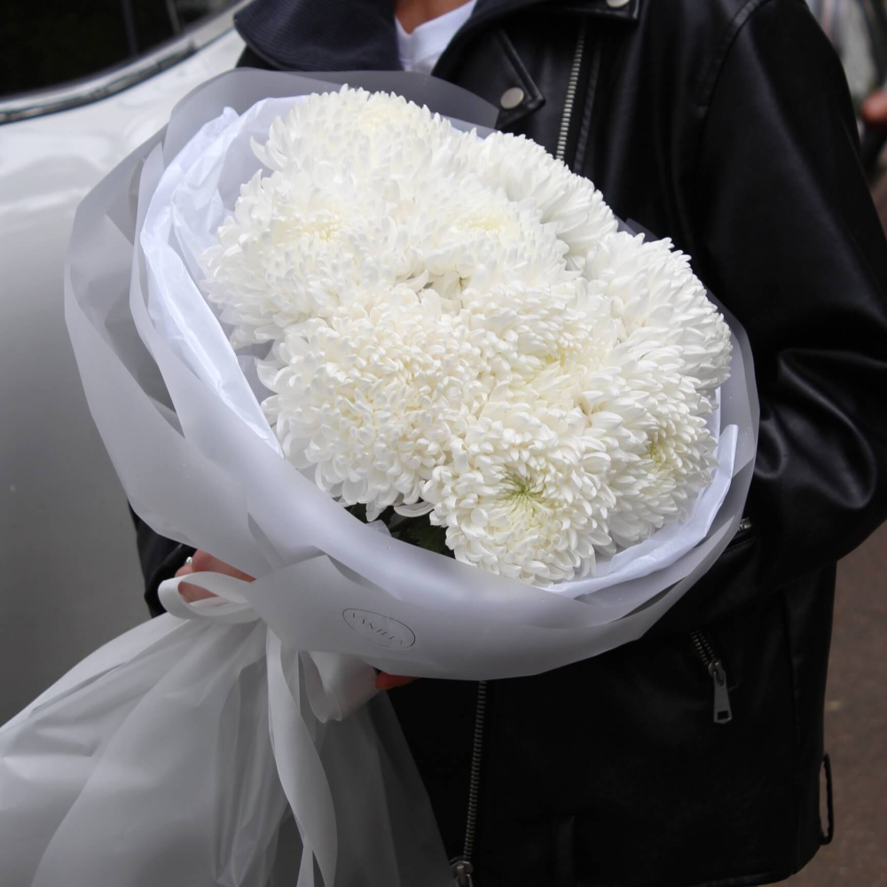Букет белых одноголовых хризантем