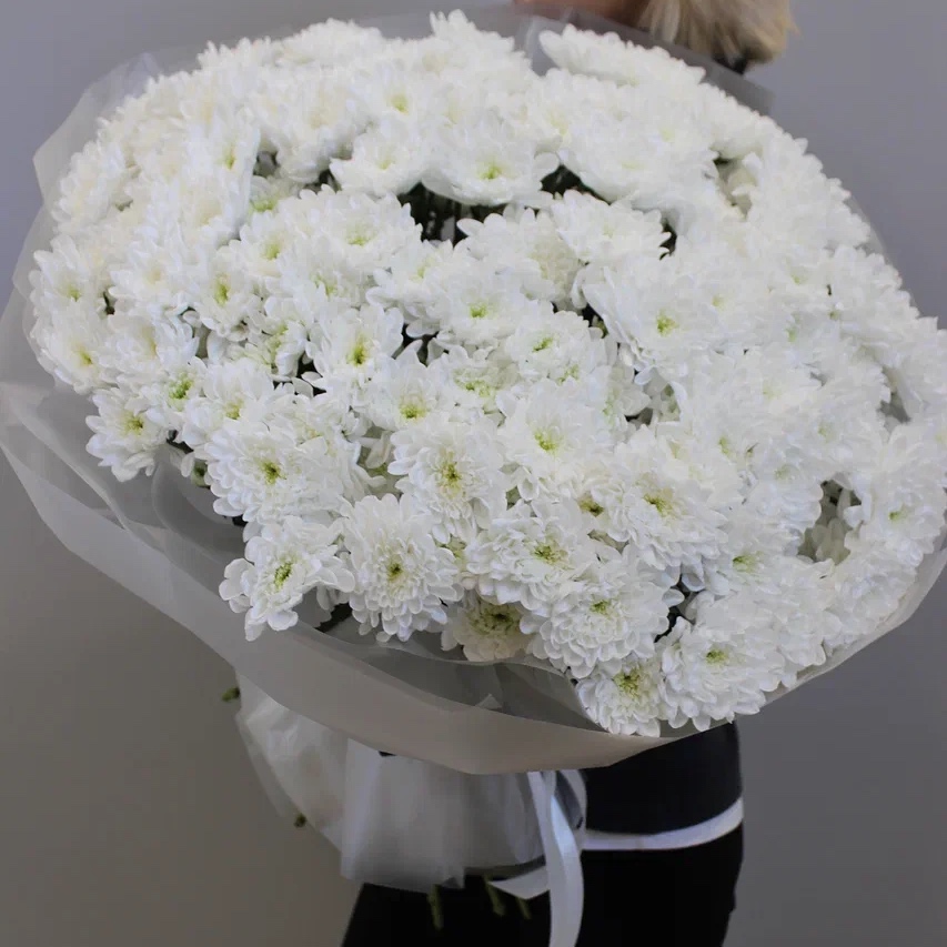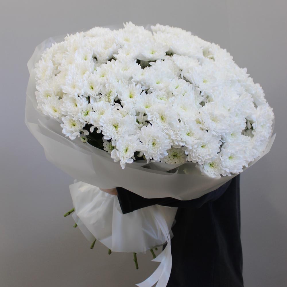 Букет из 25 веток белой кустовой хризантемы