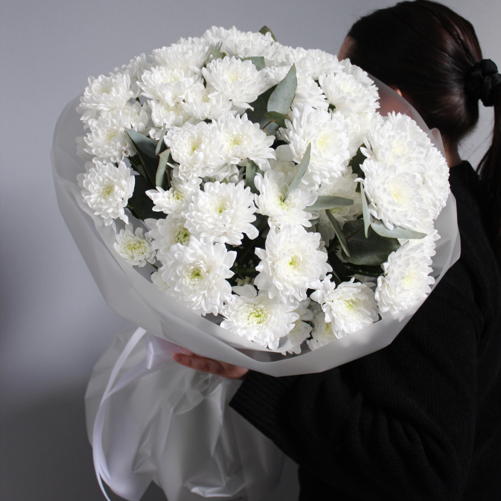 Простой, но выразительный букет из 9 веток хризантемы сорта «Алтай» — идеальный способ сказать «я думаю о тебе» без лишних слов.